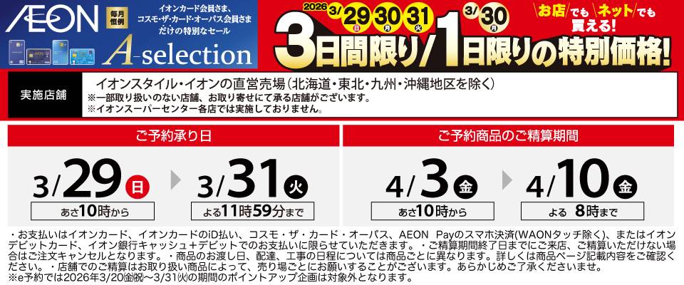 イオンおトク!e予約サイトにアクセスいただきありがとうございます。 ご予約商品のご注文期間は、2026年03月29日(日)からとなります。 ご予約受付までしばらくお待ちください。