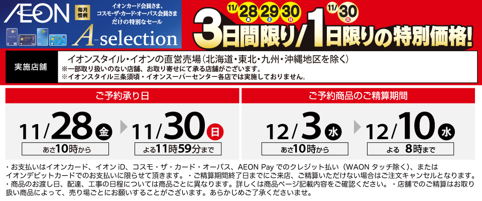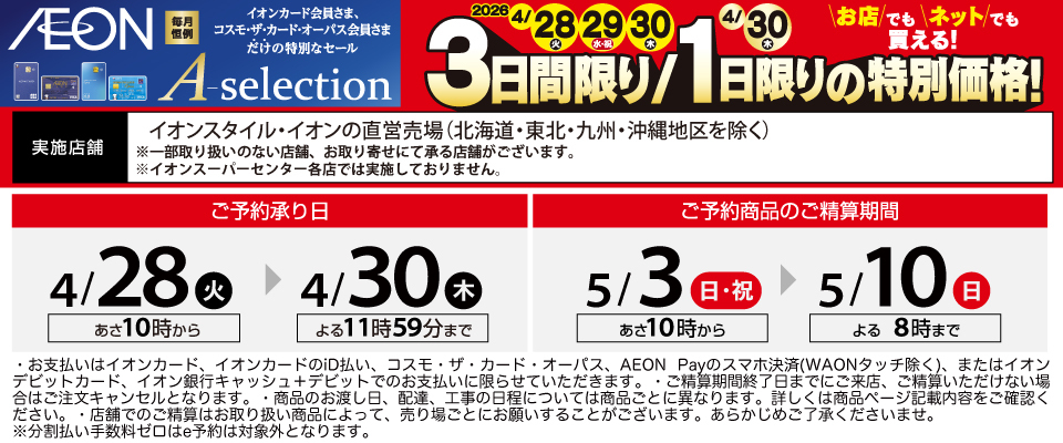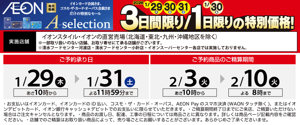 イオンカード会員さま限定[3日間限り/1日限りの特別価格]へようこそ